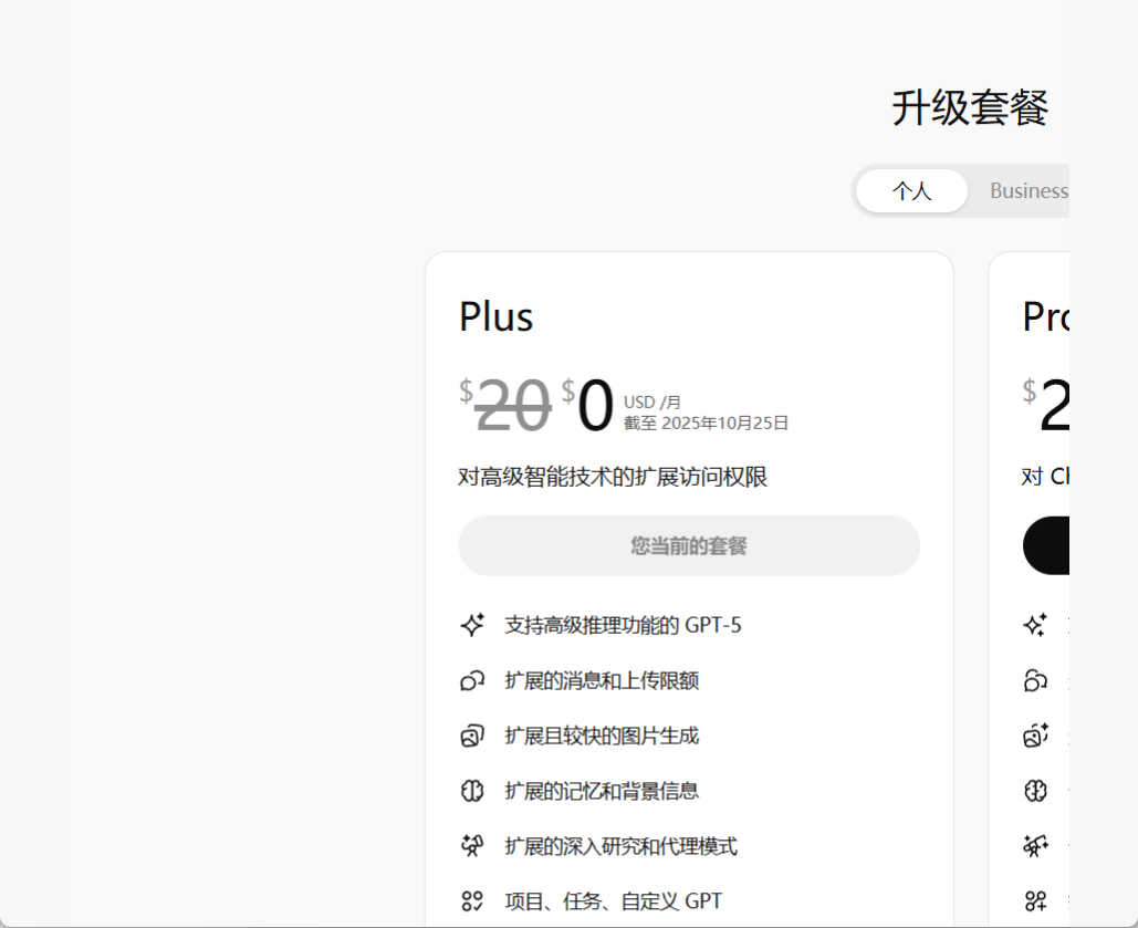 很多人想体验 GPT Plus,却一直舍不得开会员。现在机会来了!官方放福利:GPT Plus 和 Business 会员限时免费试用一个月!